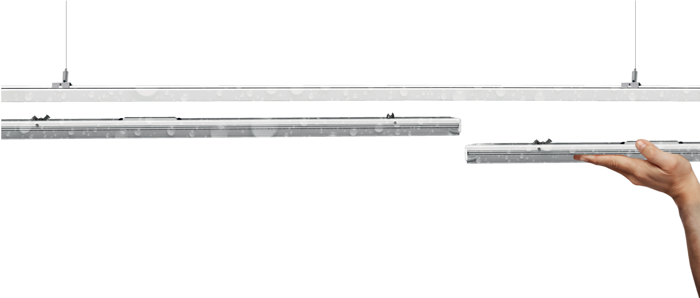Das FARA HYDRA-E Lichtbandsystem ist ein Schnellmontage-Lichtbandsystem mit zertifizierten LED-Modulen und Treibern. Es besteht aus lackierten Aluminium-Trägerprofilen in 1-längig oder 2-längig Ausführung. Die elektrische Verbindung der