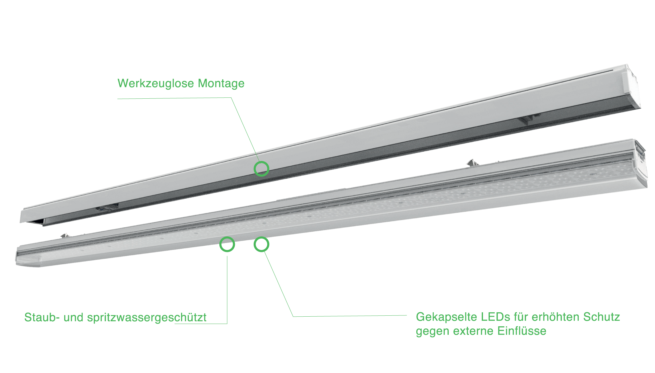 Lichtbandsysteme zur optimalen Umsetzung von Industriebeleuchtungen. Von der einfachen Montage über Effizienz bis zur flexiblen Steuerung finden Sie hier Lichtbänder zur Beleuchtung Ihrer Halle.